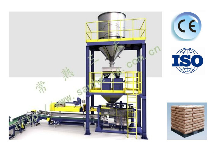 A escala de embalagem eletrônica consiste pesar a unidade, máquina de costura, transportando o dispositivo, sistema pneumático, sistema da remoção de poeira, controle de embalagem quantitativo, etc. o processo de peso inteiro é controlado pelo PLC e terminado automaticamente.