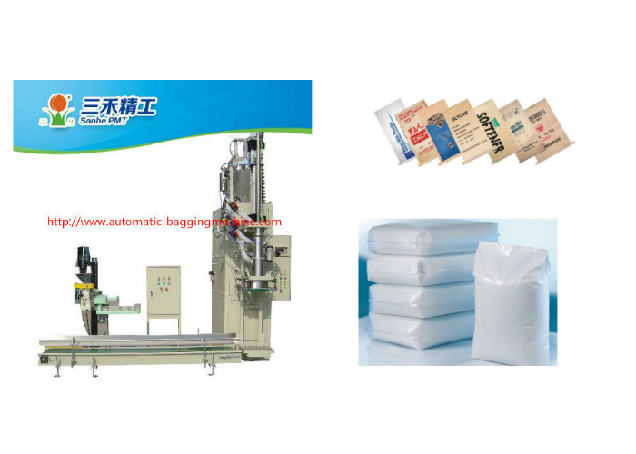 A escala de embalagem eletrônica consiste pesar a unidade, máquina de costura, transportando o dispositivo, sistema pneumático, sistema da remoção de poeira, controle de embalagem quantitativo, etc. o processo de peso inteiro é controlado pelo PLC e terminado automaticamente.