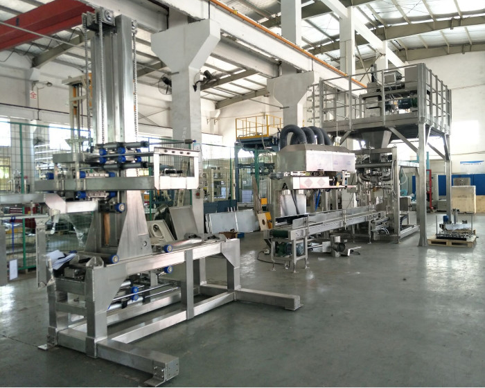 O sistema é aplicado ao peso automático quantitativo, enchendo-se, amassando, e acumulando pese e épocas, costurando/selagem térmica e transportando com o assistente manual para o material do pó na fábrica da farinha ou o material tal como a forma da pelota.