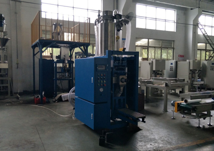 A escala de embalagem eletrônica consiste pesar a unidade, máquina de costura, transportando o dispositivo, sistema pneumático, sistema da remoção de poeira, controle de embalagem quantitativo, etc. o processo de peso inteiro é controlado pelo PLC e terminado automaticamente.