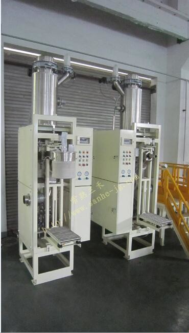 A escala de embalagem eletrônica consiste pesar a unidade, máquina de costura, transportando o dispositivo, sistema pneumático, sistema da remoção de poeira, controle de embalagem quantitativo, etc. o processo de peso inteiro é controlado pelo PLC e terminado automaticamente.