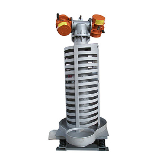 A grua vertical da vibração/elevador espiral da vibração é usada onde quer que os sólidos maiorias têm que ser transportados em um sentido vertical. Estes elevadores espirais robustos são apropriados para transportar um anfitrião de sólidos maiorias dos vários processos de produção. Estes podem ser finos aos sólidos maiorias grosseiro-grained, assim como fragmentários. Nossos elevadores espirais são usados no produto químico, farmacêutico e em indústrias alimentares, e igualmente na indústria da matéria prima. O uso de dispositivos elétricos adicionais permite produtos de ser tratado por processos (de secagem) térmicos (refrigerar/aquecimento) ou técnicos.